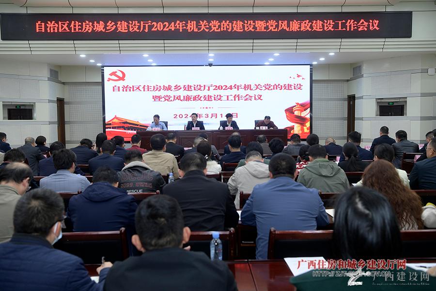 3月14日,自治區住房城鄉建設廳召開2024年機關黨的建設暨黨風廉政建設工作會議,傳達學習二十屆中央紀委三次全會精神,自治區紀委十二屆四次全會以及2024年全區機關黨的建設工作會議等有關會議精神,總結2023年黨的建設和黨風廉政建設工作,研究部署2024年重點工作任務。自治區住房城鄉建設廳黨組書記、廳長楊綠峰出席會議并講話。