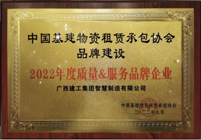 廣西建工集團智慧制造有限公司榮獲“2022年度質量服務品牌企業”,公司董事長、黨總支書記李日紅榮獲“2022 年全國基建物資租賃承包行業杰出創新人才”稱號。