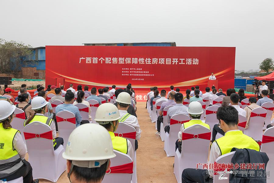 3月30日,位于南寧市西鄉塘區秀安路1號地塊的配售型保障性住房項目舉行開工活動。這是廣西首個開工建設的配售型保障性住房項目。住房和城鄉建設部住房保障司副司長翟波出席開工活動并致辭,自治區住房城鄉建設廳黨組副書記、副廳長、一級巡視員汪夏明出席活動,南寧市委常委、副市長郭偉宣布項目開工。