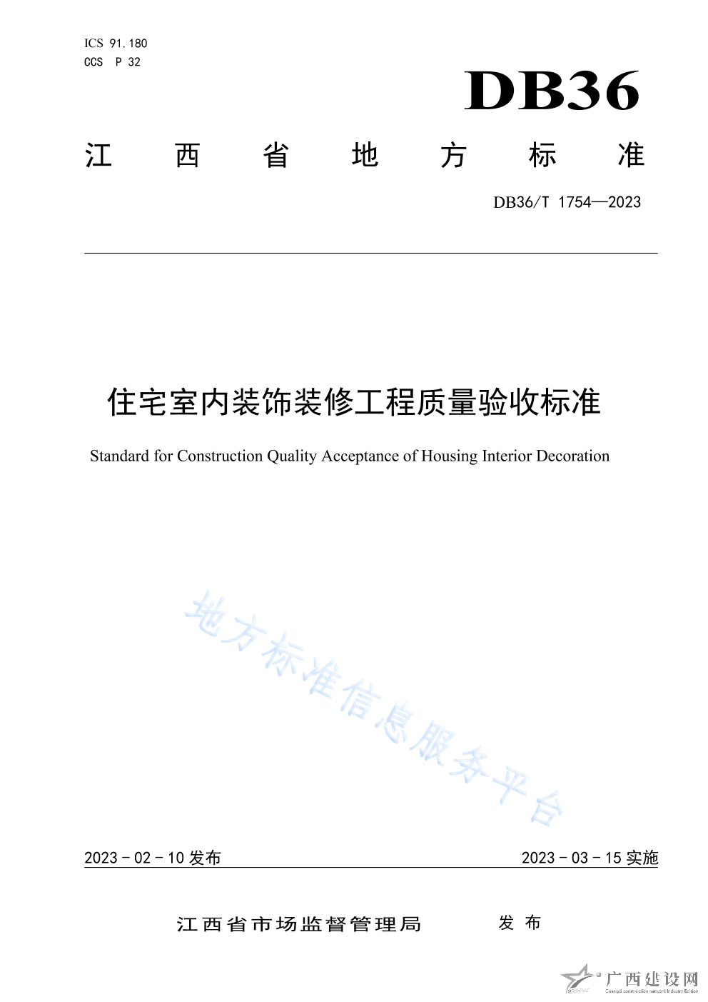 DB36T 1754-2023住宅室內(nèi)裝飾裝修工程質(zhì)量驗(yàn)收標(biāo)準(zhǔn)
