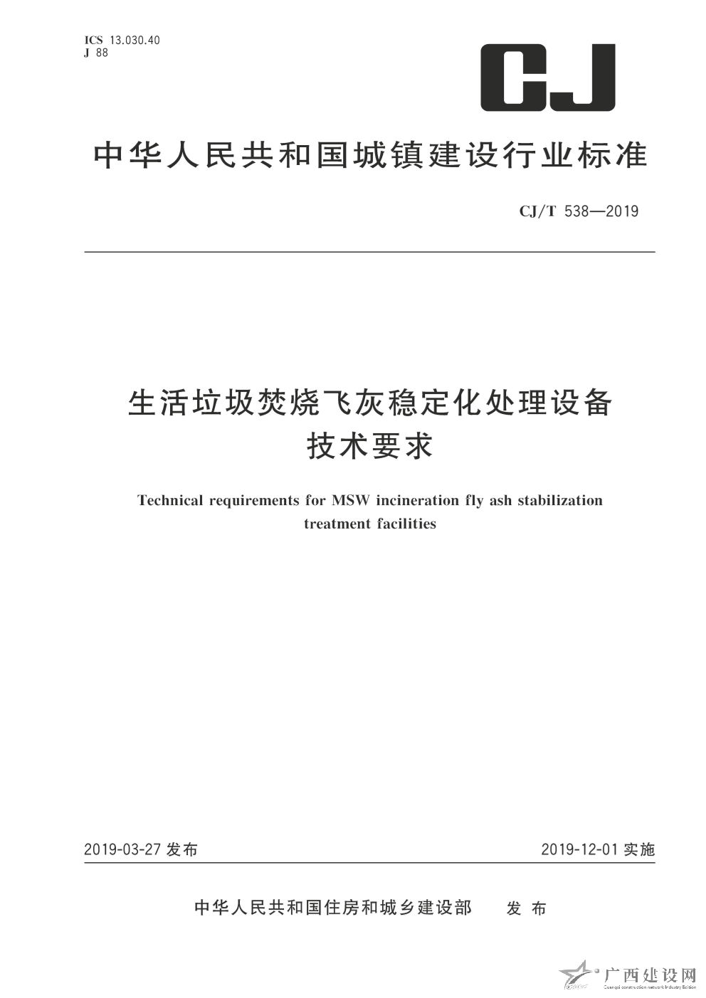 CJ-T538-2019 生活垃圾焚燒飛灰穩(wěn)定化處理設(shè)備技術(shù)要求