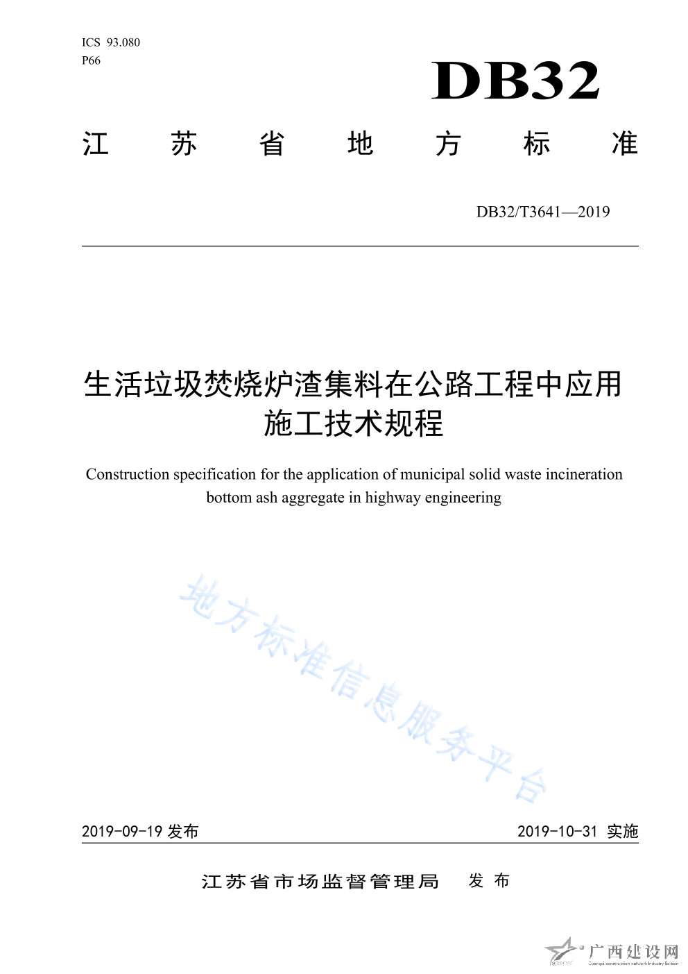 DB32 T3641-2019生活垃圾焚燒爐渣集料在公路中應(yīng)用施工技術(shù)規(guī)程