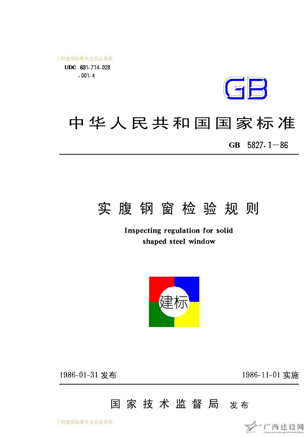 空腹鋼窗檢驗(yàn)規(guī)則 GB5827.2-86