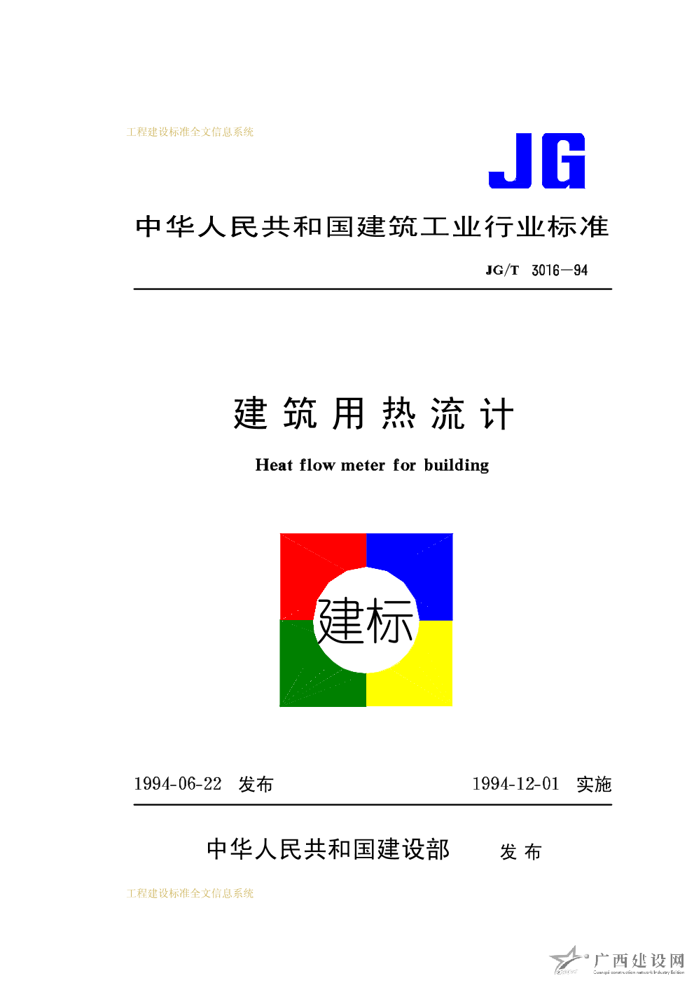 建筑用熱流計(jì) JG/T3016-94