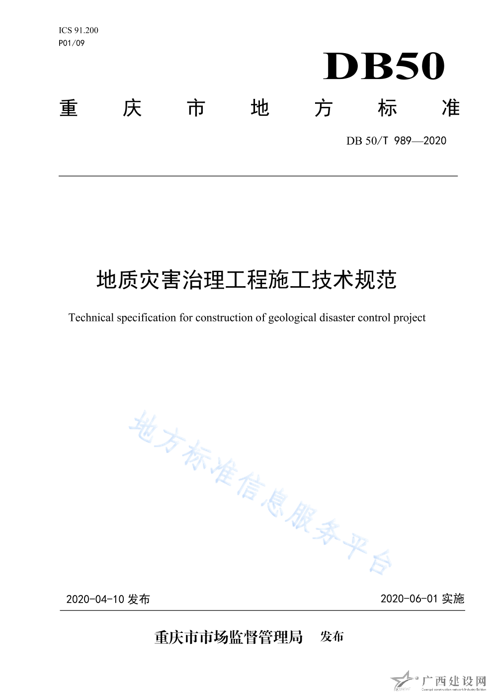 DB50 T960-2019雙壁鋼圍堰設計及施工技術規范