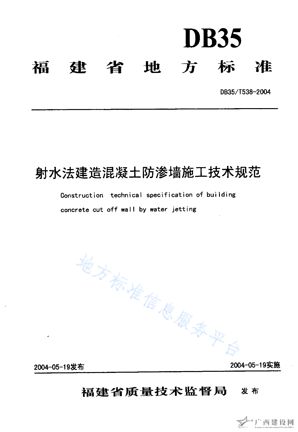 DB35 T538-2004射水法建造混凝土防滲墻施工技術(shù)規(guī)范