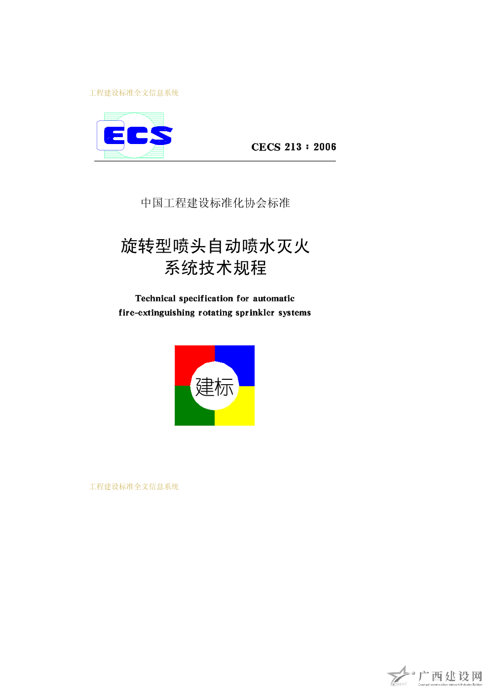 旋轉型噴頭自動噴水滅火系統技術規程 CECS213-2006