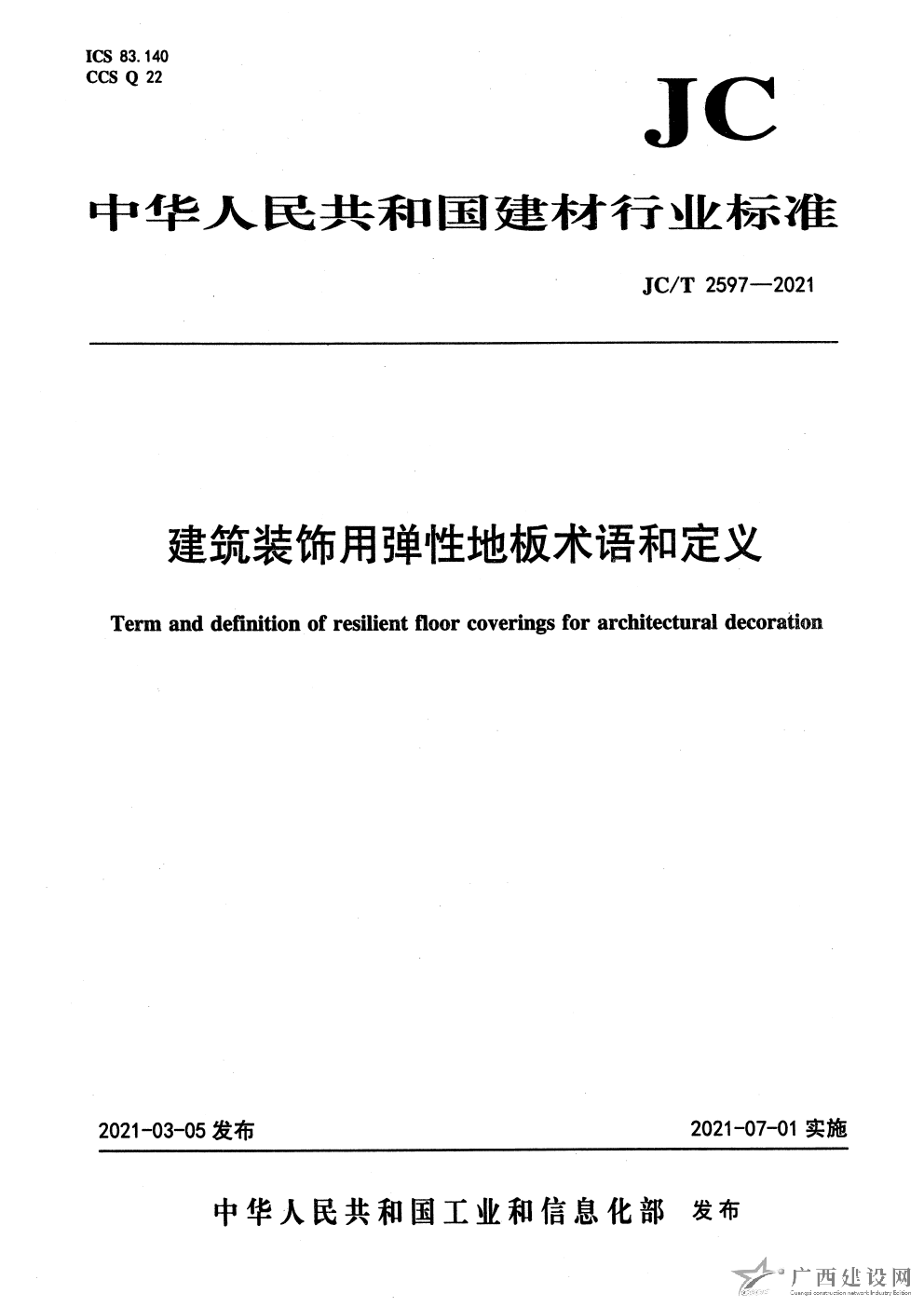 JC T 2597-2021 建筑裝飾用彈性地板術語和定義