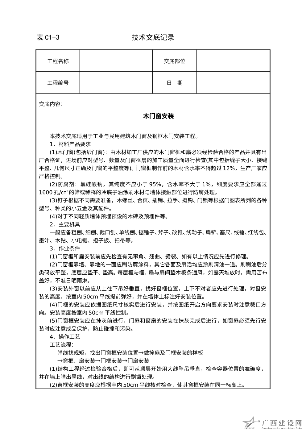 木門窗安裝檢驗(yàn)批