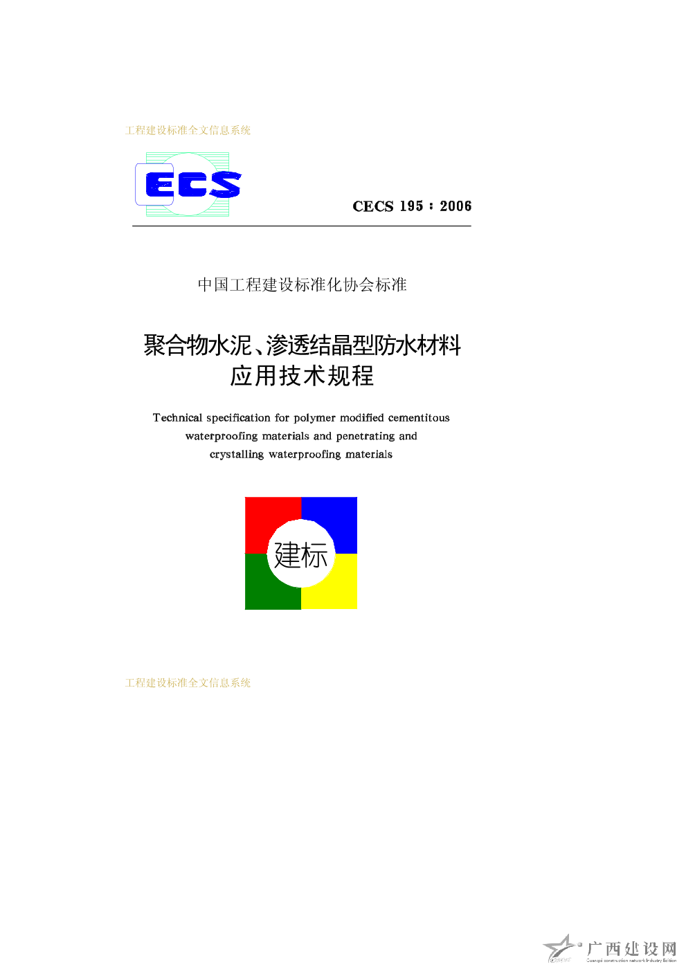 聚合物水泥、滲透結晶型防水材料應用技術規程 CECS195-2006