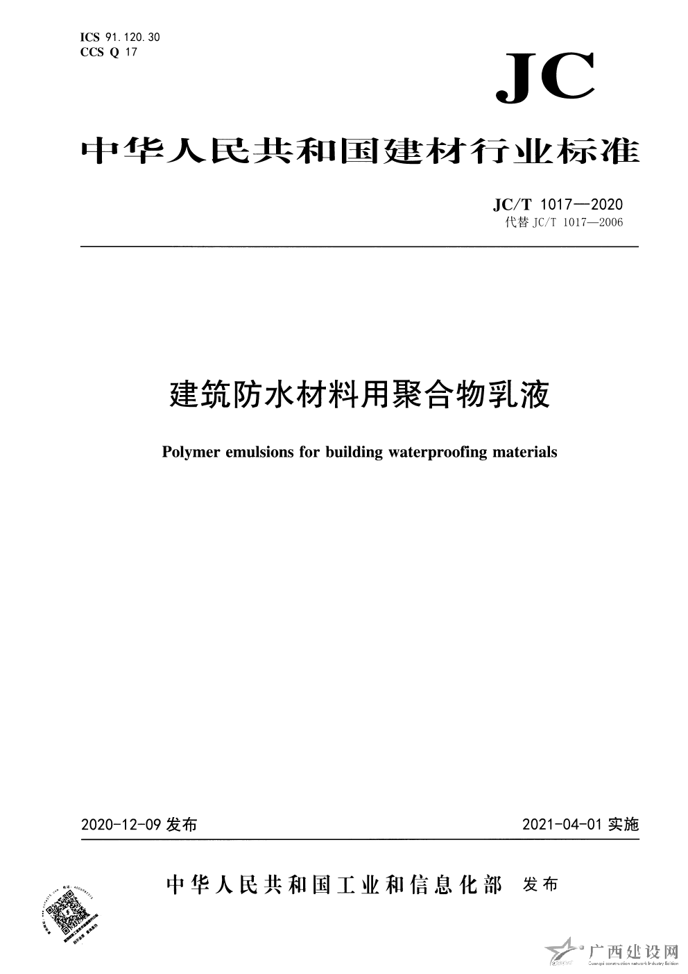 JC T 1017-2020 建筑防水材料用聚合物乳液