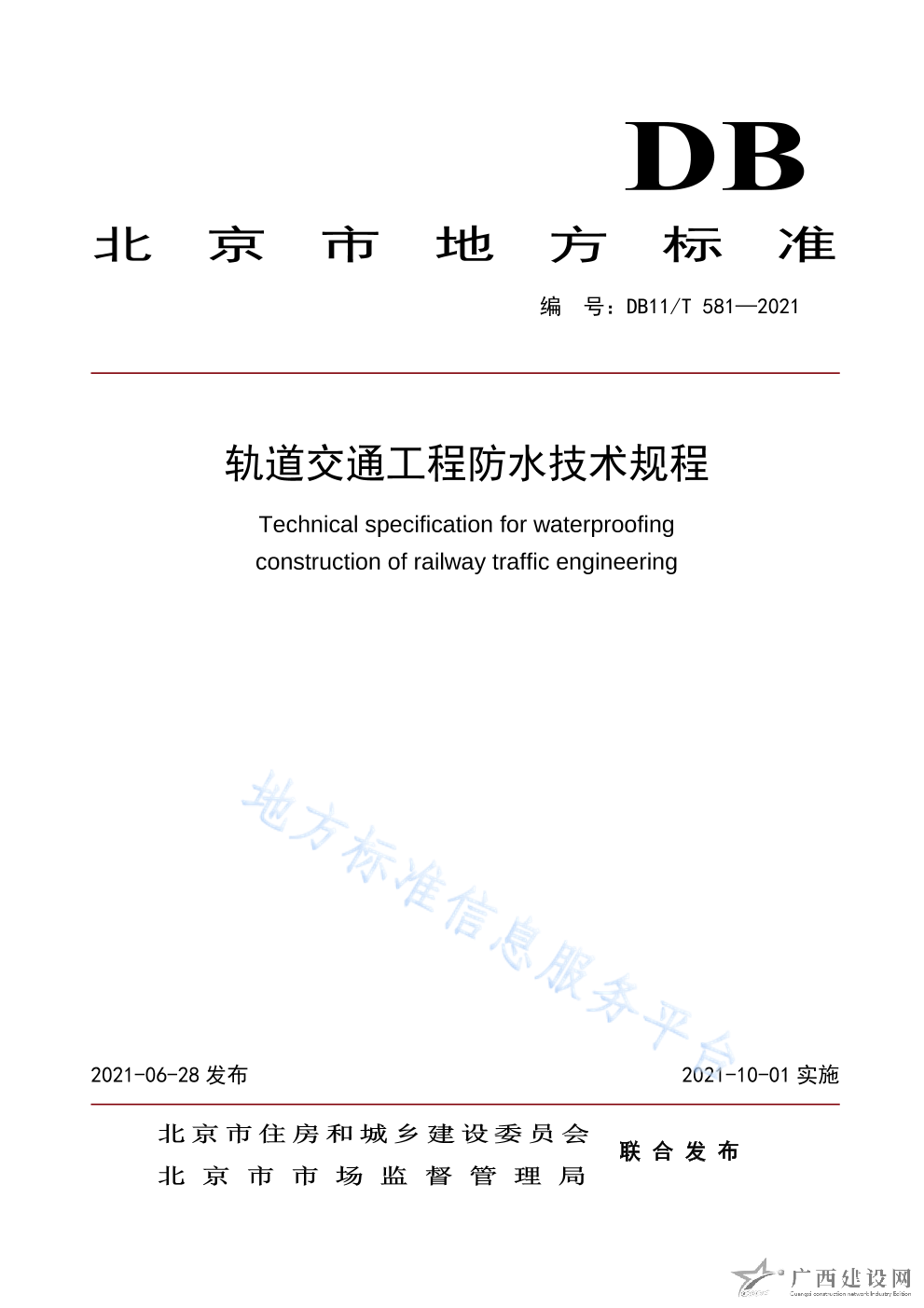 DB11 T+581-2021軌道交通工程防水技術(shù)規(guī)程