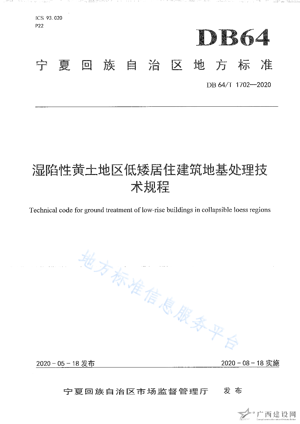 DB64 1702-2020濕陷性黃土地區低矮居住建筑地基處理技術規程