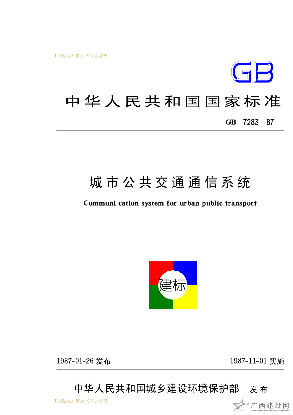 城市公共交通通信系統 GB7283-87