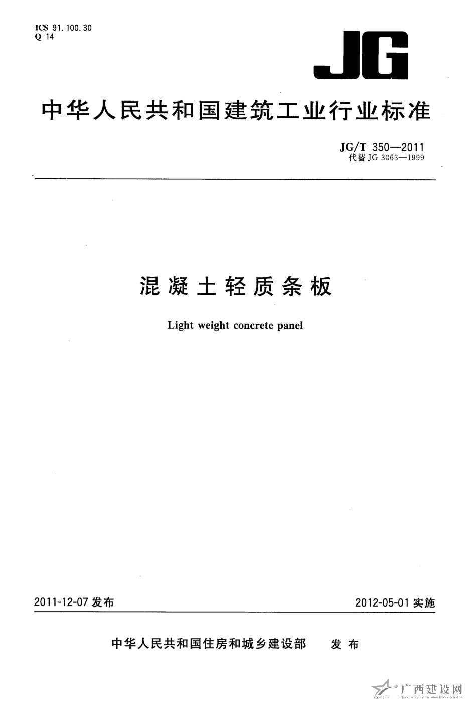 建筑隔墻用輕質條板 JG/T169-2005
