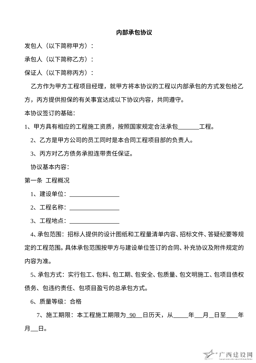 建設(shè)工程內(nèi)部承包協(xié)議(有擔(dān)保方)