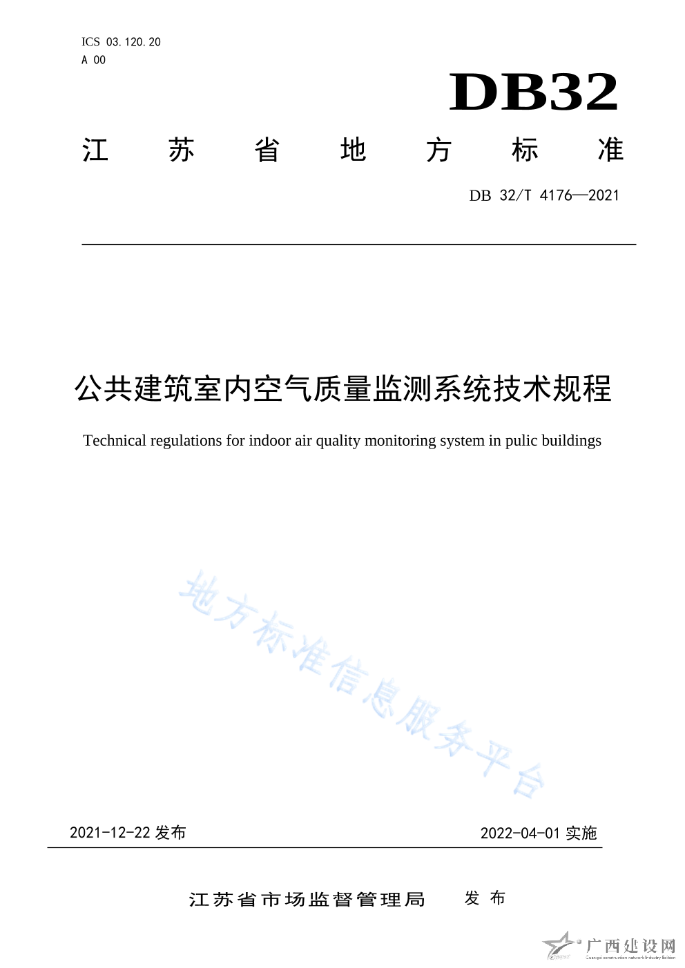 DB32 T4176-2021公共建筑室內(nèi)空氣質(zhì)量監(jiān)測(cè)系統(tǒng)技術(shù)規(guī)程
