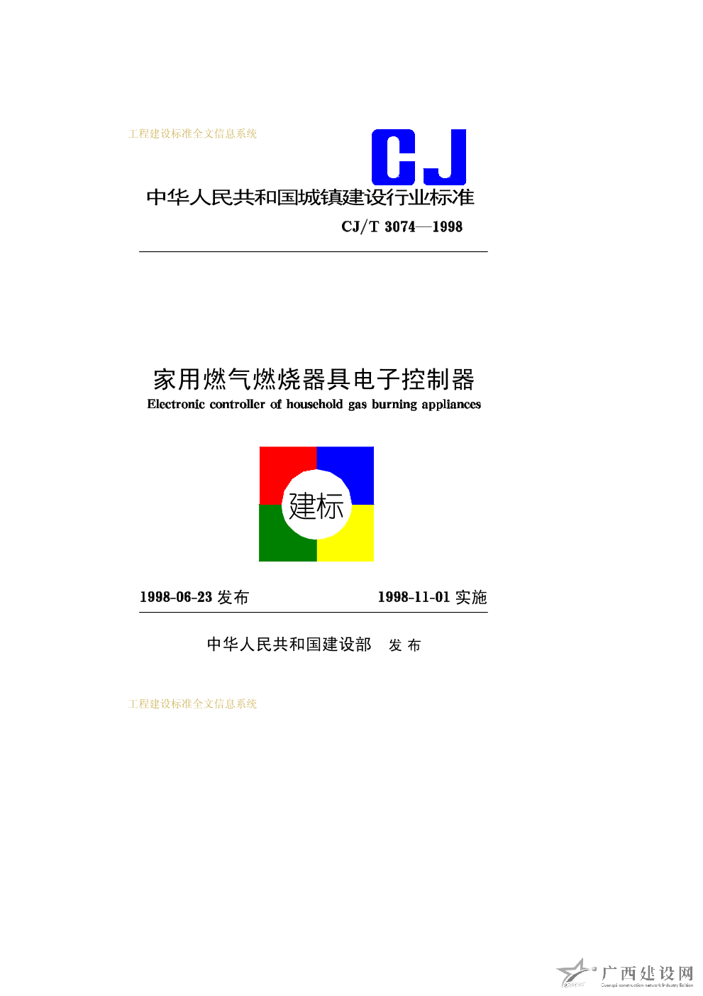 家用燃氣燃燒器具電子控制器 CJ/T3074—1998
