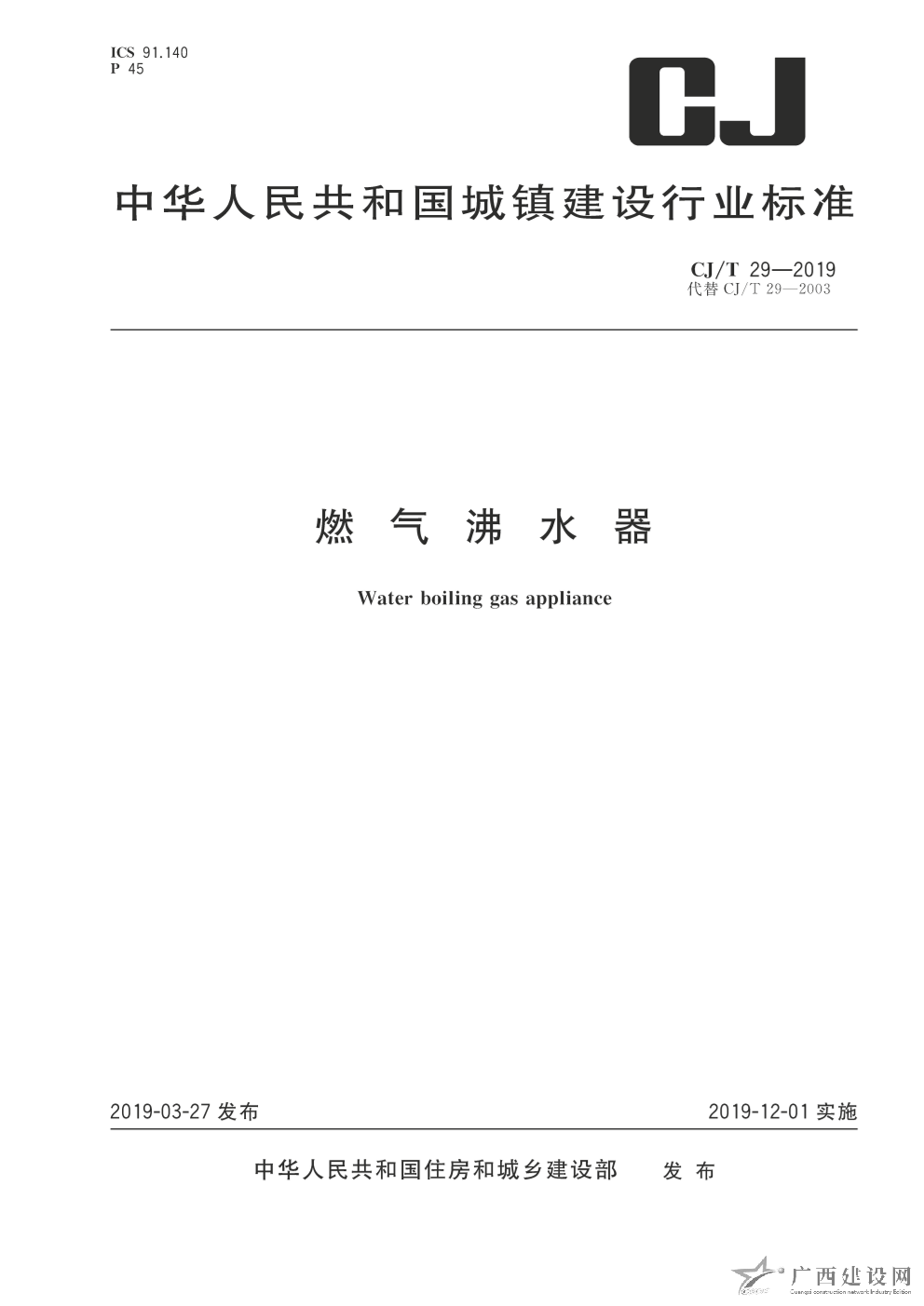 燃氣沸水器 CJ/T29-2003