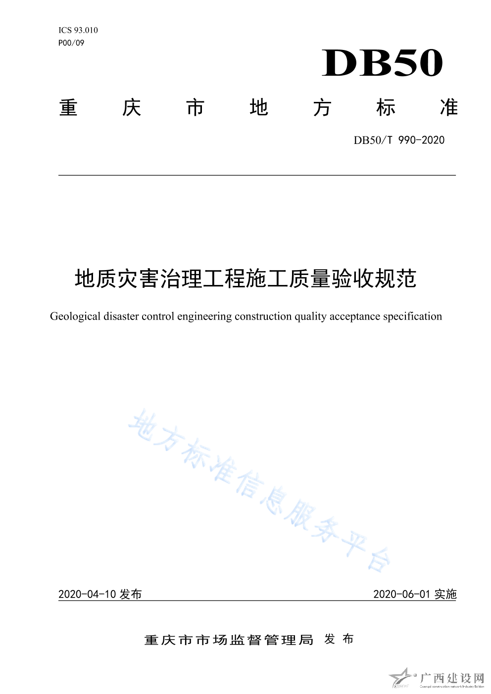 DB50 T989-2020地質災害治理工程施工技術規范