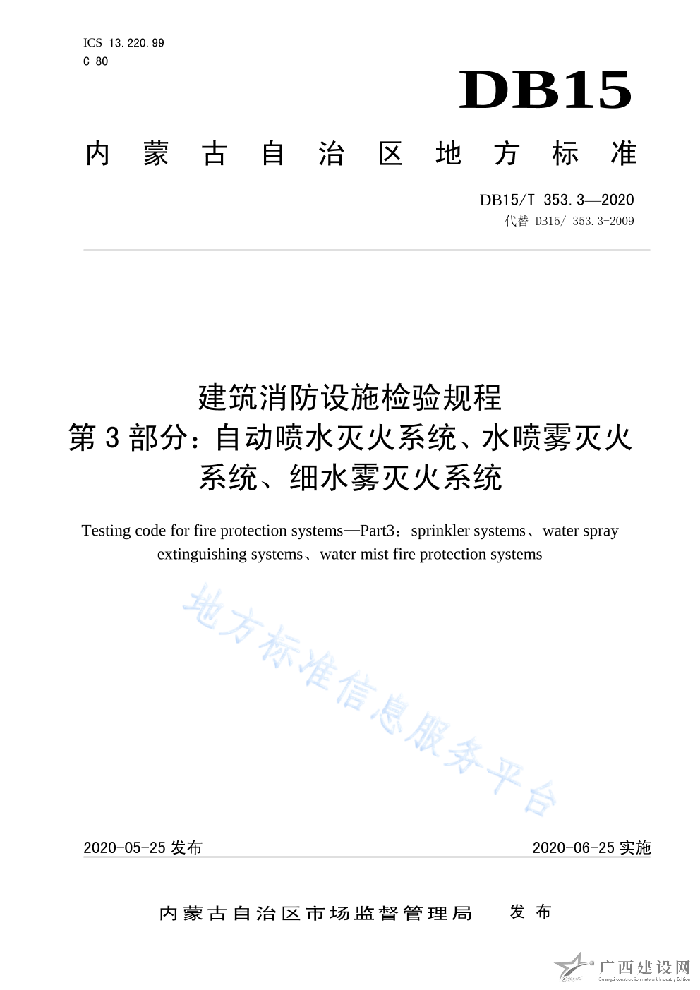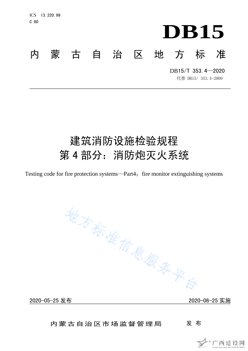 DB15 T353 13-2020建筑消防設施檢驗規程 第13部分消防電梯系統