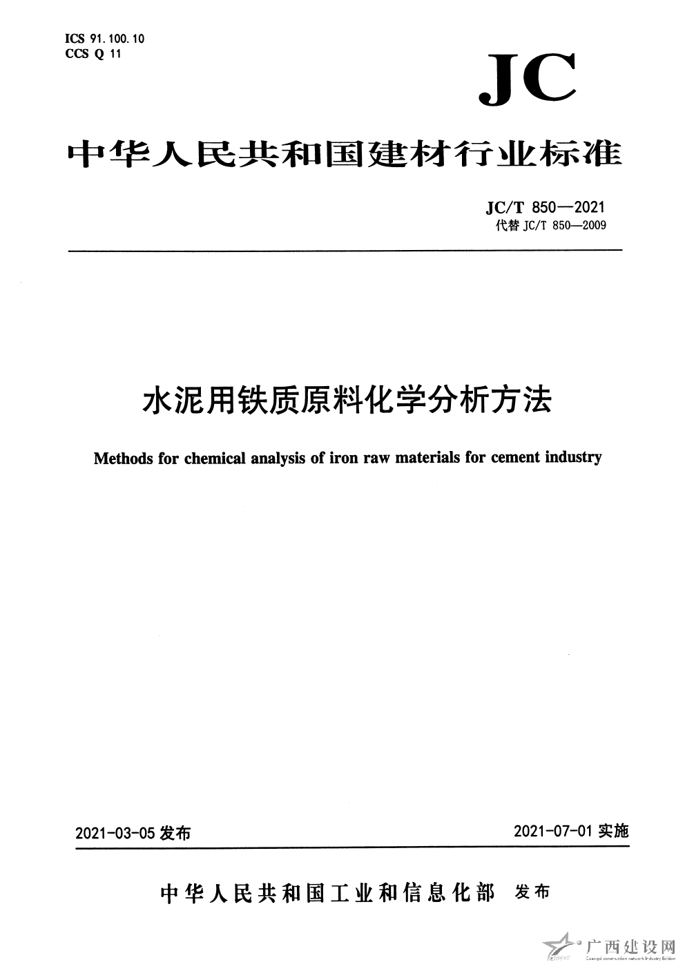 JC T 850-2021 水泥用鐵質(zhì)原料化學(xué)分析方法