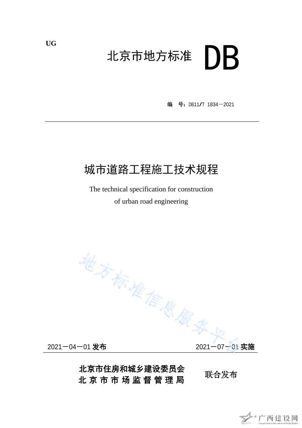 DB11 T+1834-2021城市道路工程施工技術(shù)規(guī)程
