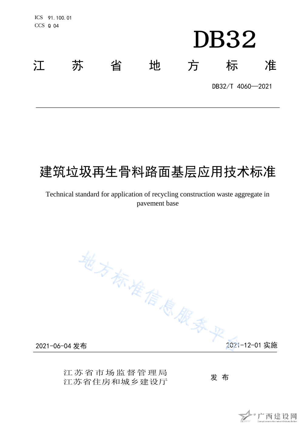 DB32 T4060-2021建筑垃圾再生骨料路面基層應(yīng)用技術(shù)標(biāo)準(zhǔn)