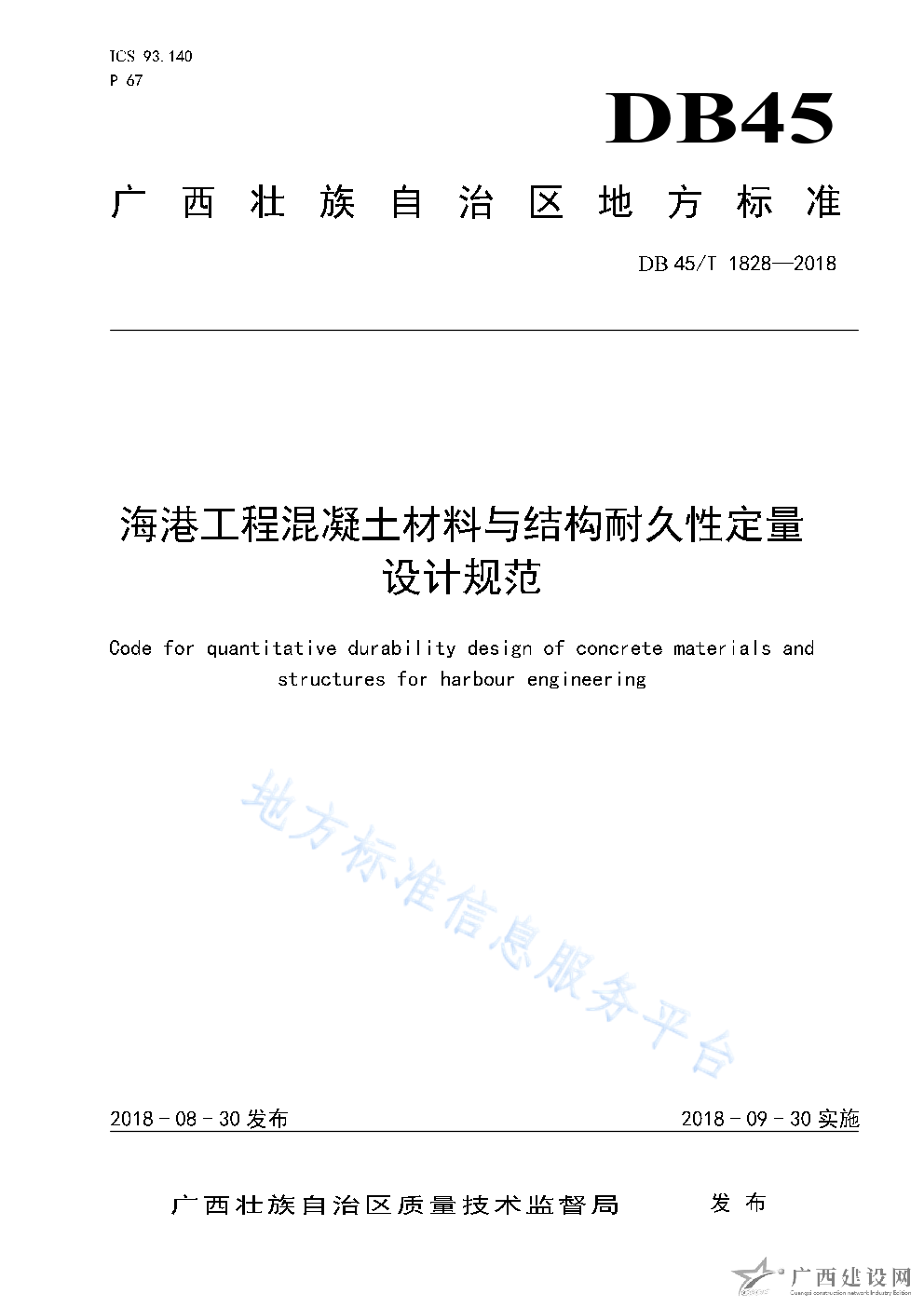 DB45T1828-2018海港工程混凝土材料與結(jié)構(gòu)耐久性定量設(shè)計(jì)規(guī)范