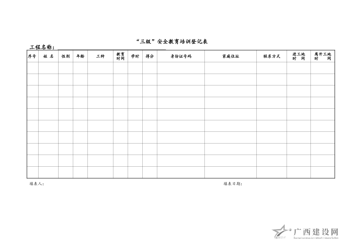 職工安全生產教育培訓記錄表