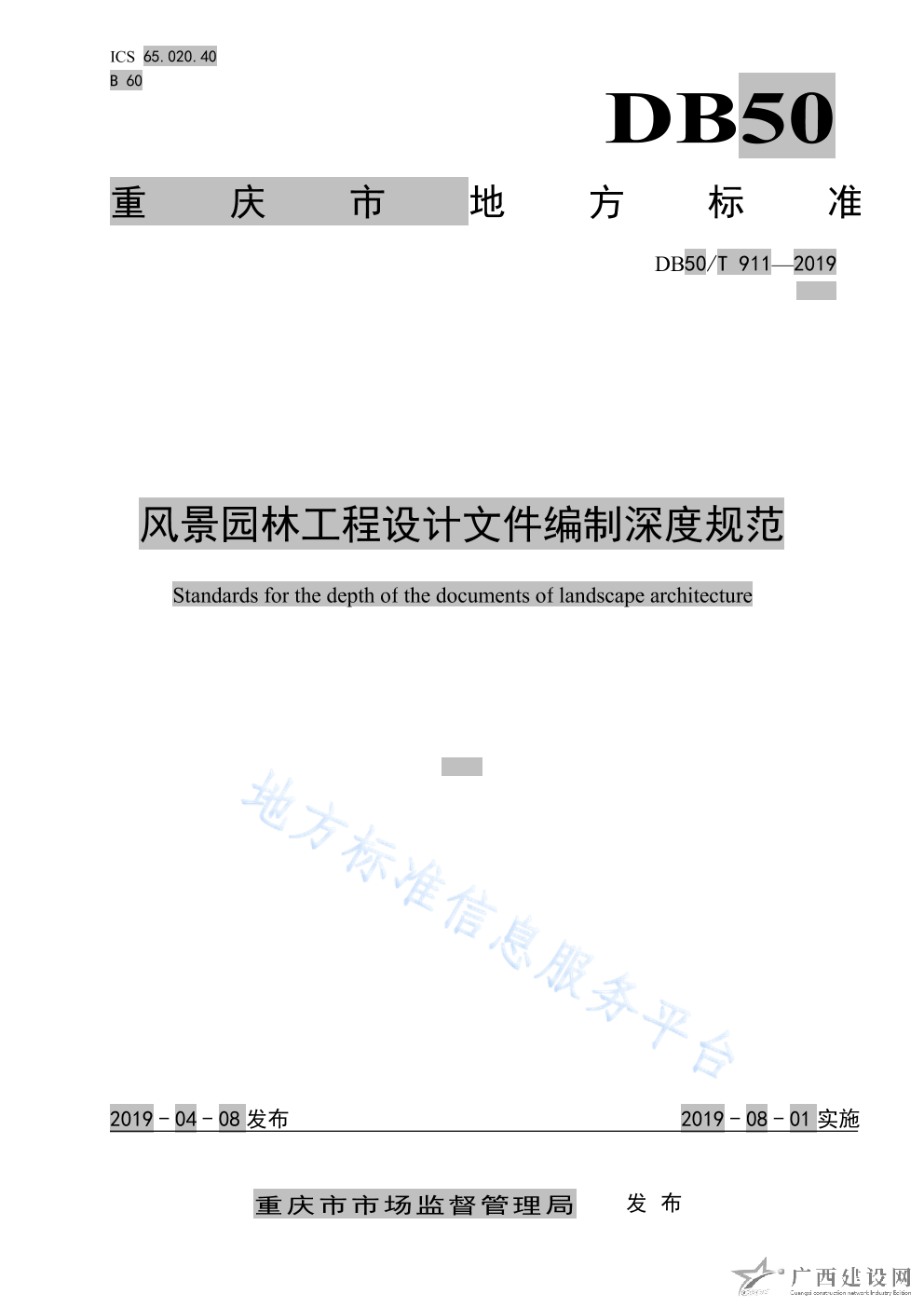 DB50 T910-2019園林綠化種植工程技術規范