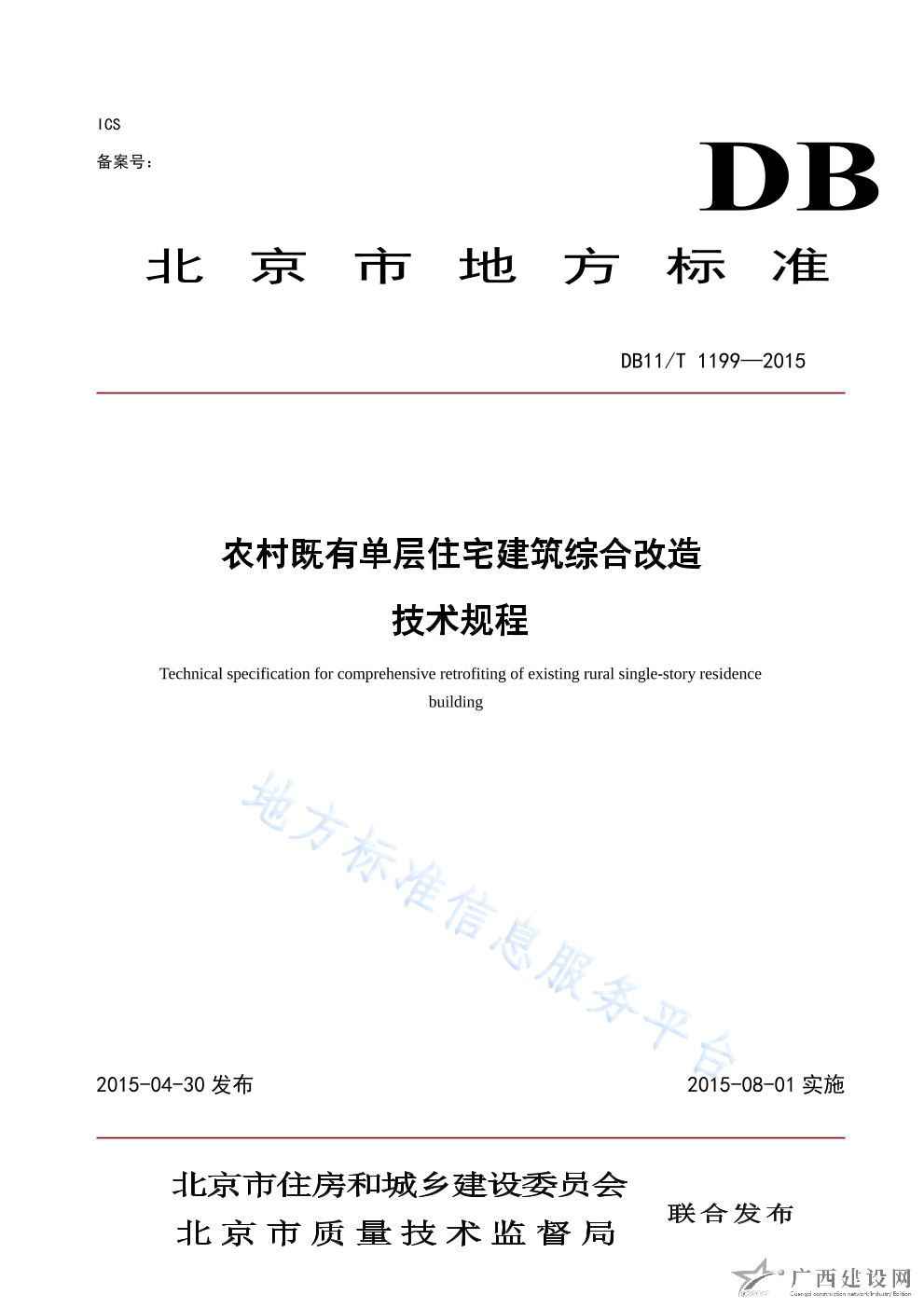 DB11 T_1199-2015農(nóng)村既有單層住宅建筑綜合改造技術(shù)規(guī)程