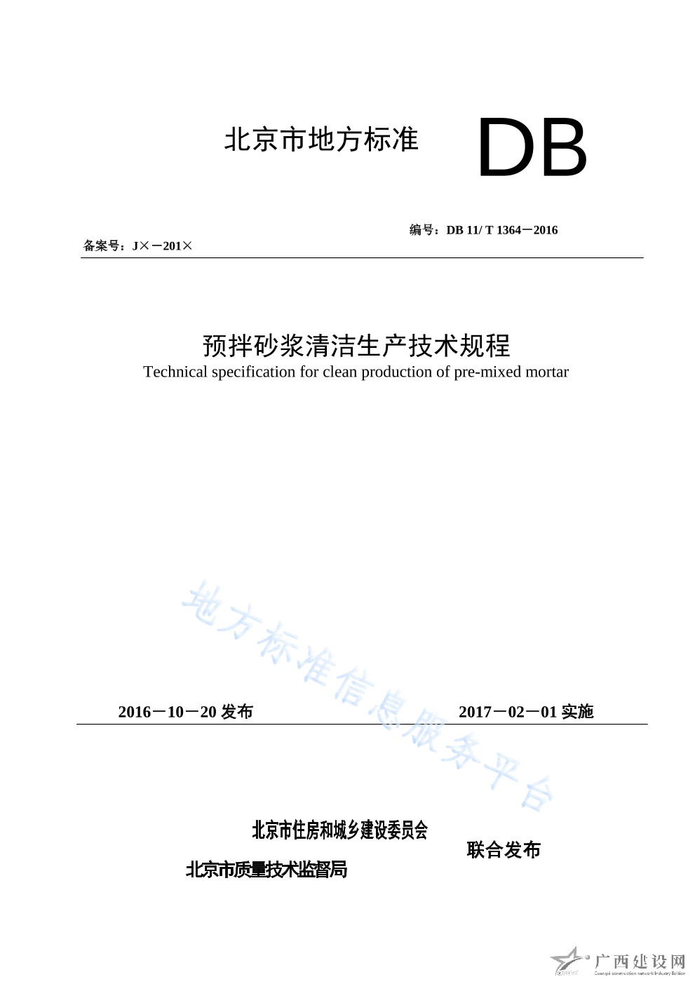DB11 T_1364-2016預(yù)拌砂漿清潔生產(chǎn)技術(shù)規(guī)程