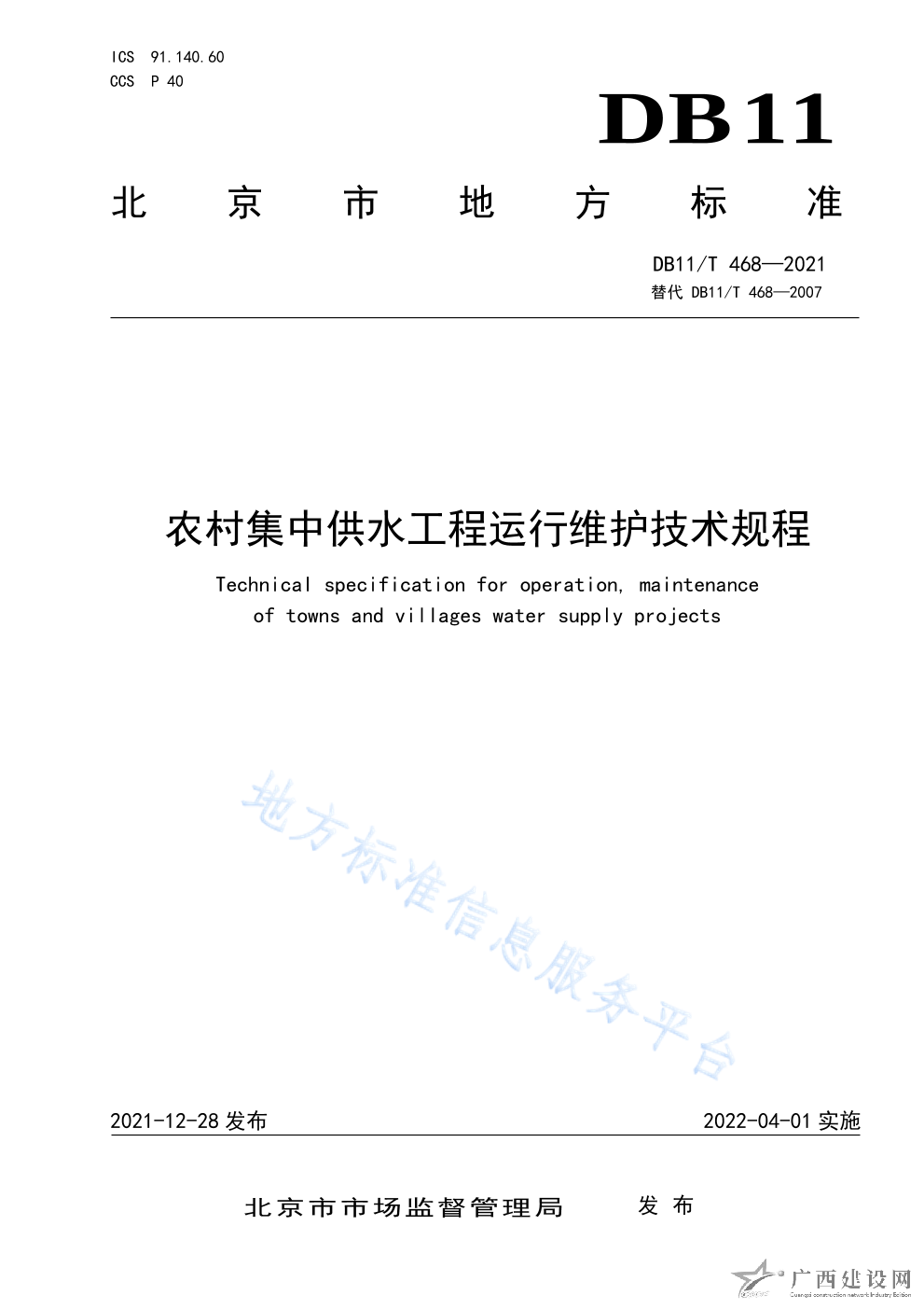 DB11 T+468-2021農(nóng)村集中供水工程運(yùn)行維護(hù)技術(shù)規(guī)程