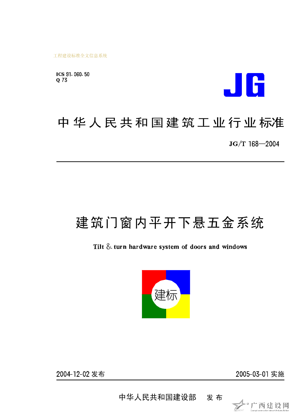 建筑門(mén)窗內(nèi)平開(kāi)下懸五金系統(tǒng) JG/T168-2004
