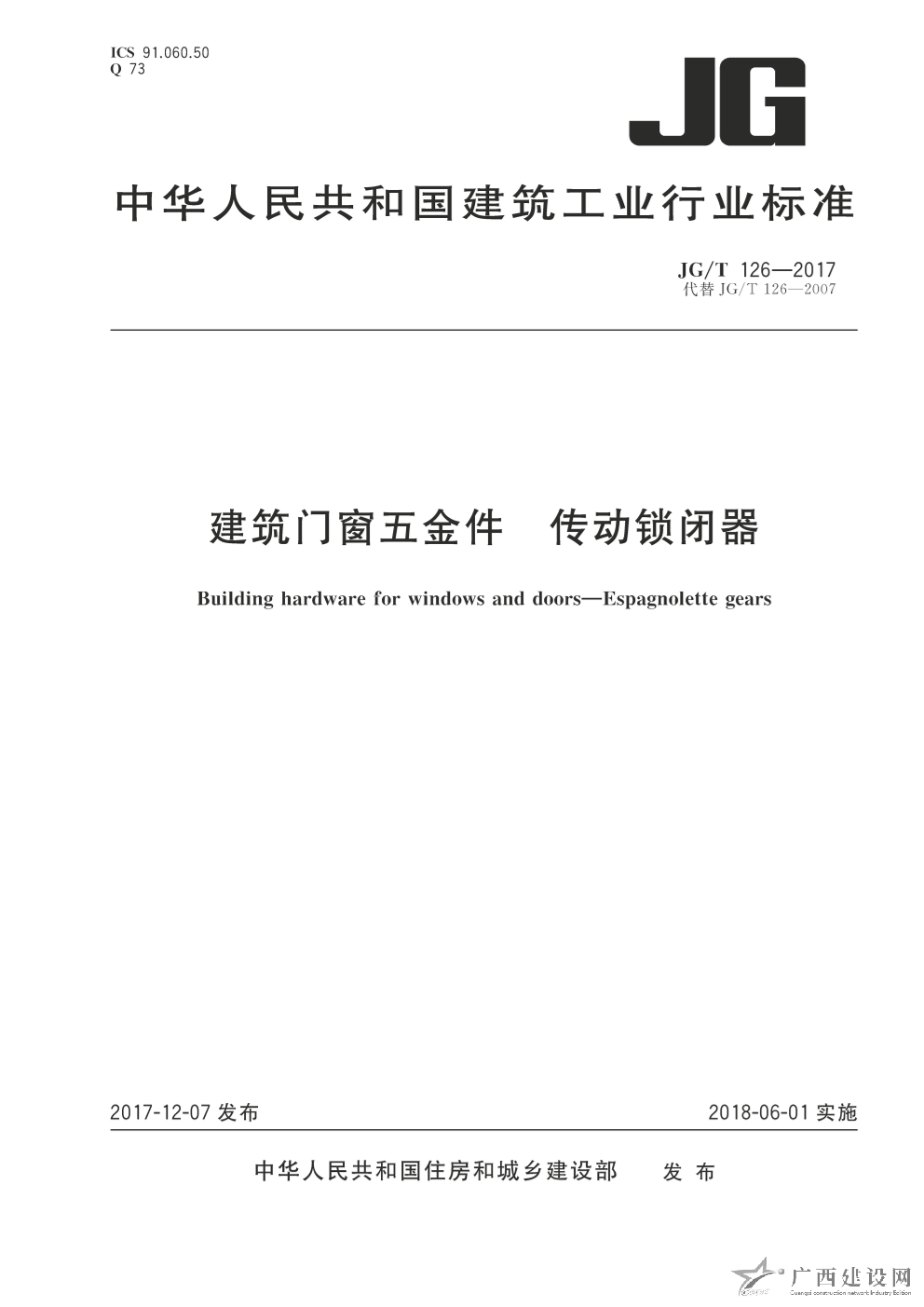 JG-T126-2017:建筑門窗五金件 傳動鎖閉器