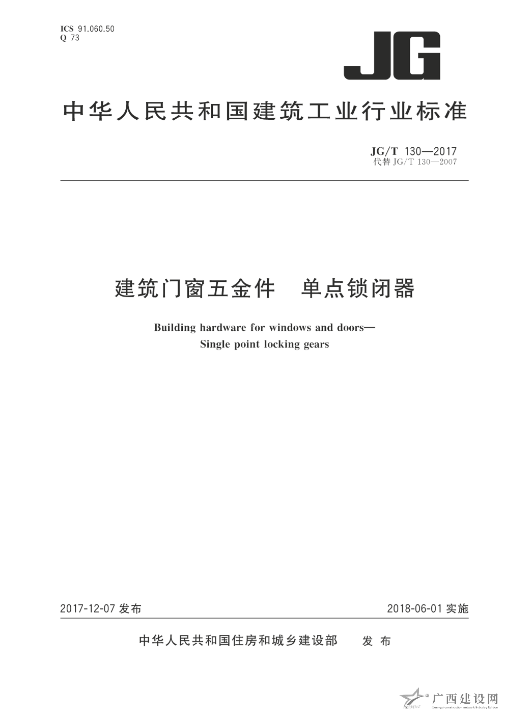JG-T130-2017:建筑門窗五金件 單點鎖閉器