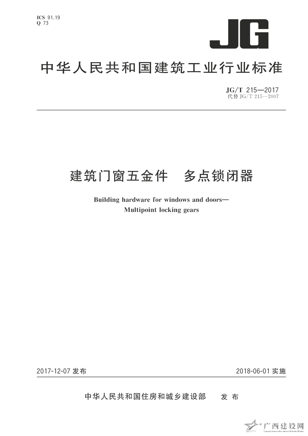 JG-T215-2017:建筑門窗五金件 多點鎖閉器