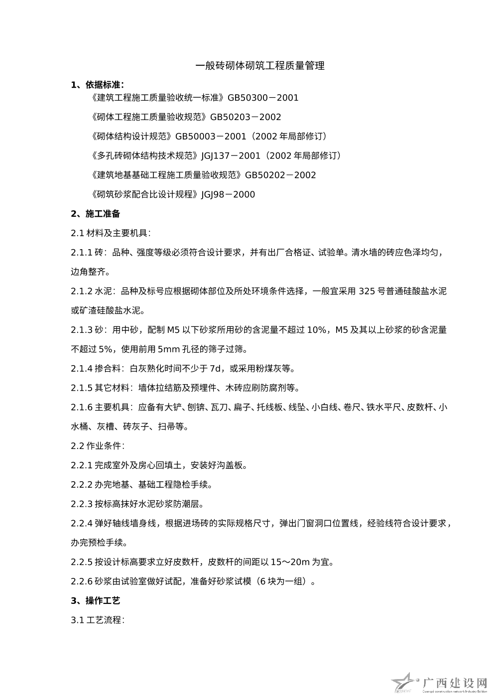一般磚砌體砌筑工程