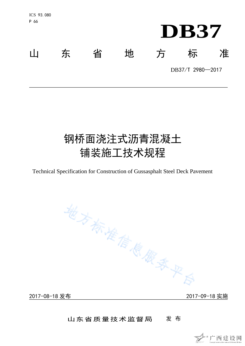 DB37 T2980-2017鋼橋面澆注式瀝青混凝土鋪裝施工技術(shù)規(guī)程