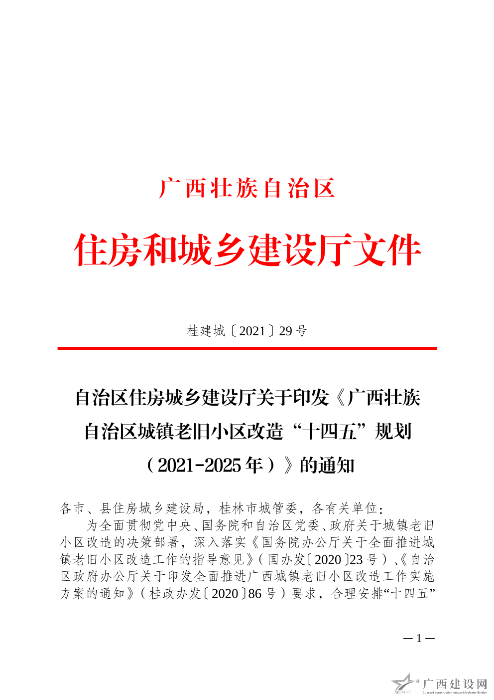 廣西壯族自治區城鎮老舊小區改造“十四五”規劃(2021-2025年)(廳網)