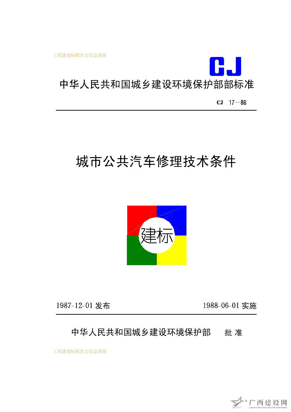 城市公共汽車修理技術(shù)條件 CJ17-86