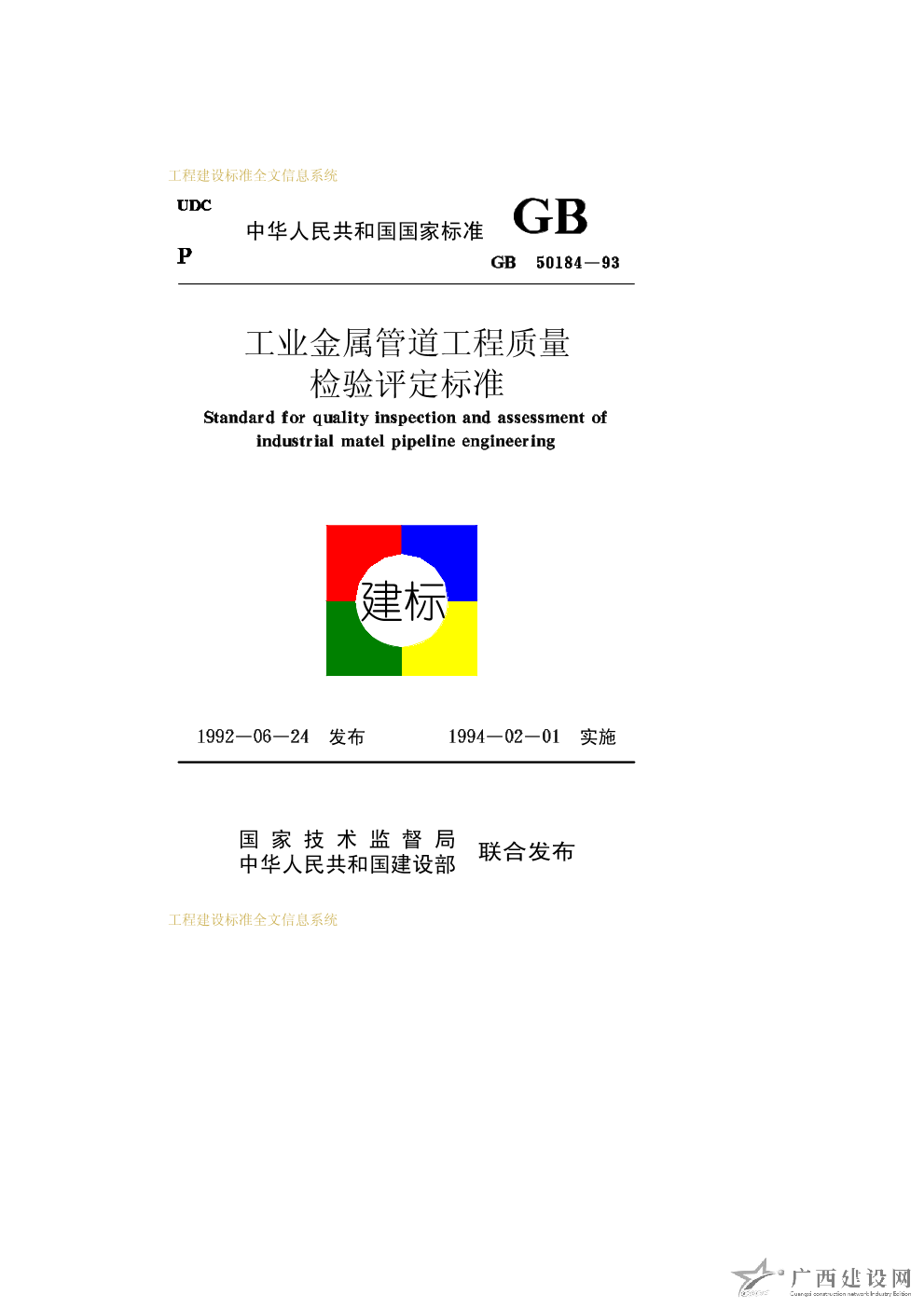 工業(yè)金屬管道工程質(zhì)量檢驗(yàn)評(píng)定標(biāo)準(zhǔn) GB50184-93