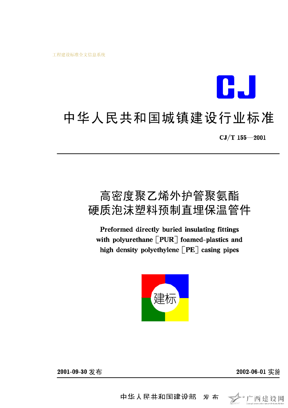 高密度聚乙烯外護管聚氨酯硬質泡沫塑料預制直埋保溫管件 CJ/T155—2001