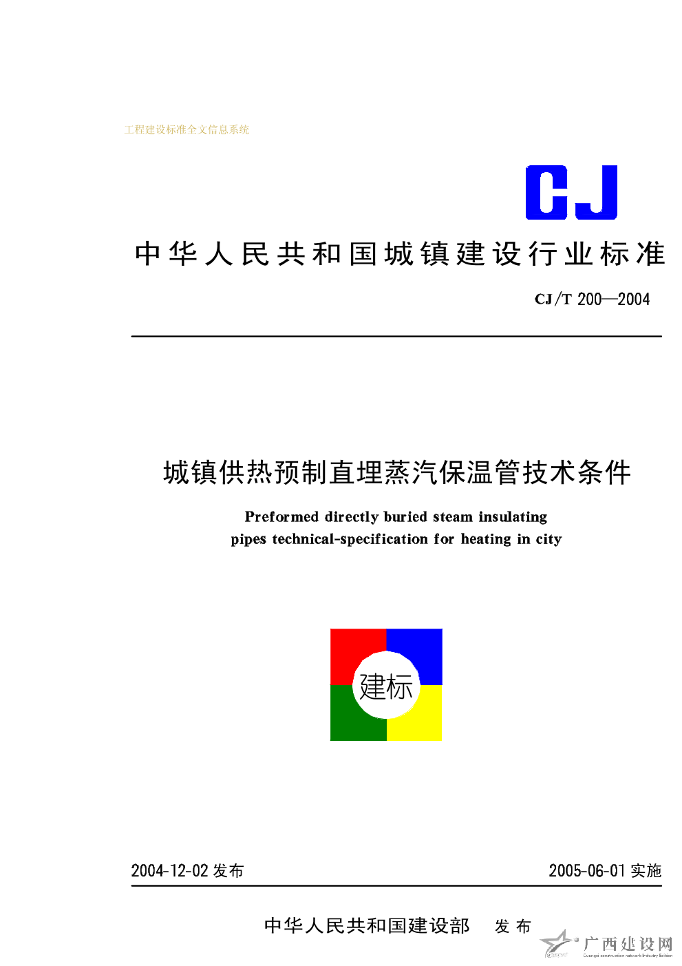 城鎮供熱預制直埋蒸汽保溫管技術條件 CJ/T200-2004
