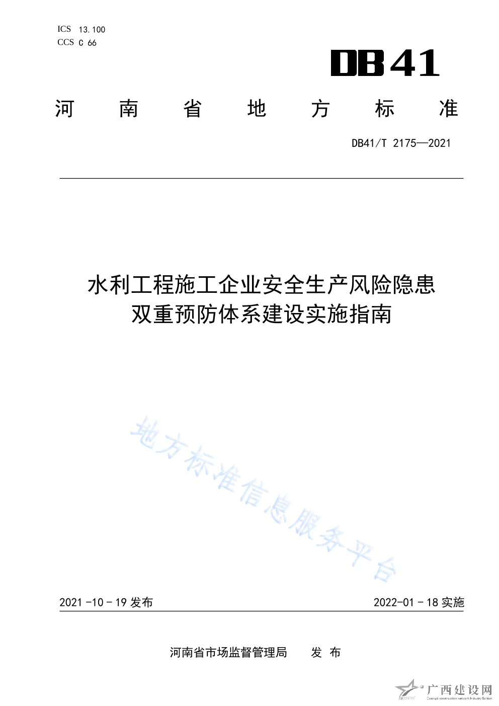 DB22 T3182-2020交通設施養護工程施工企業安全生產風險分級管控和隱患排查治理雙重預防機制建設實施規范