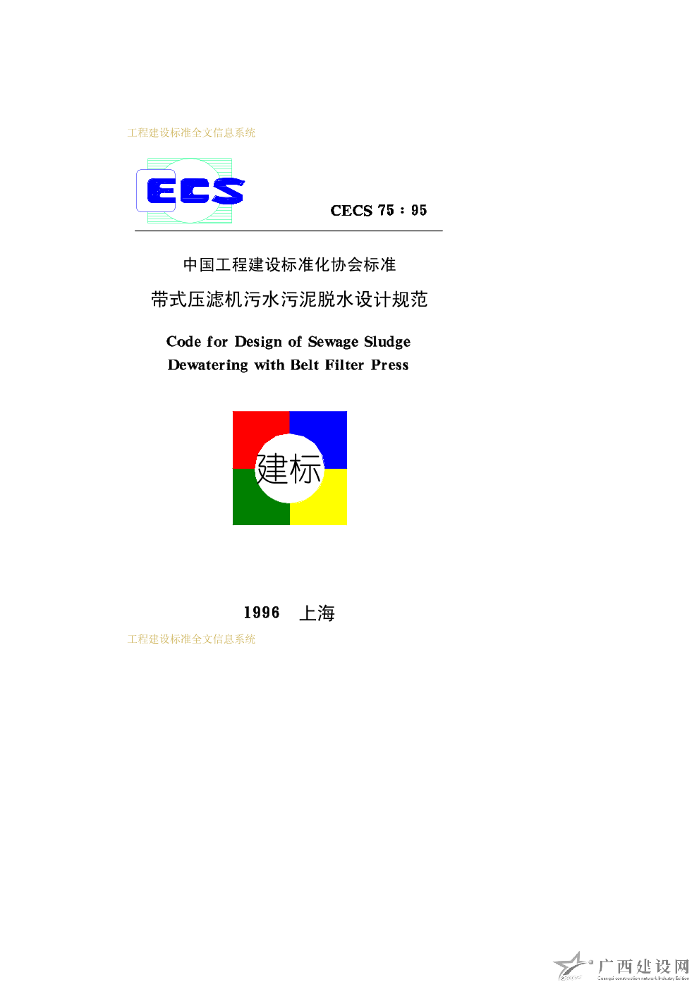 帶式壓濾機污水污泥脫水設計規范 CECS75∶95