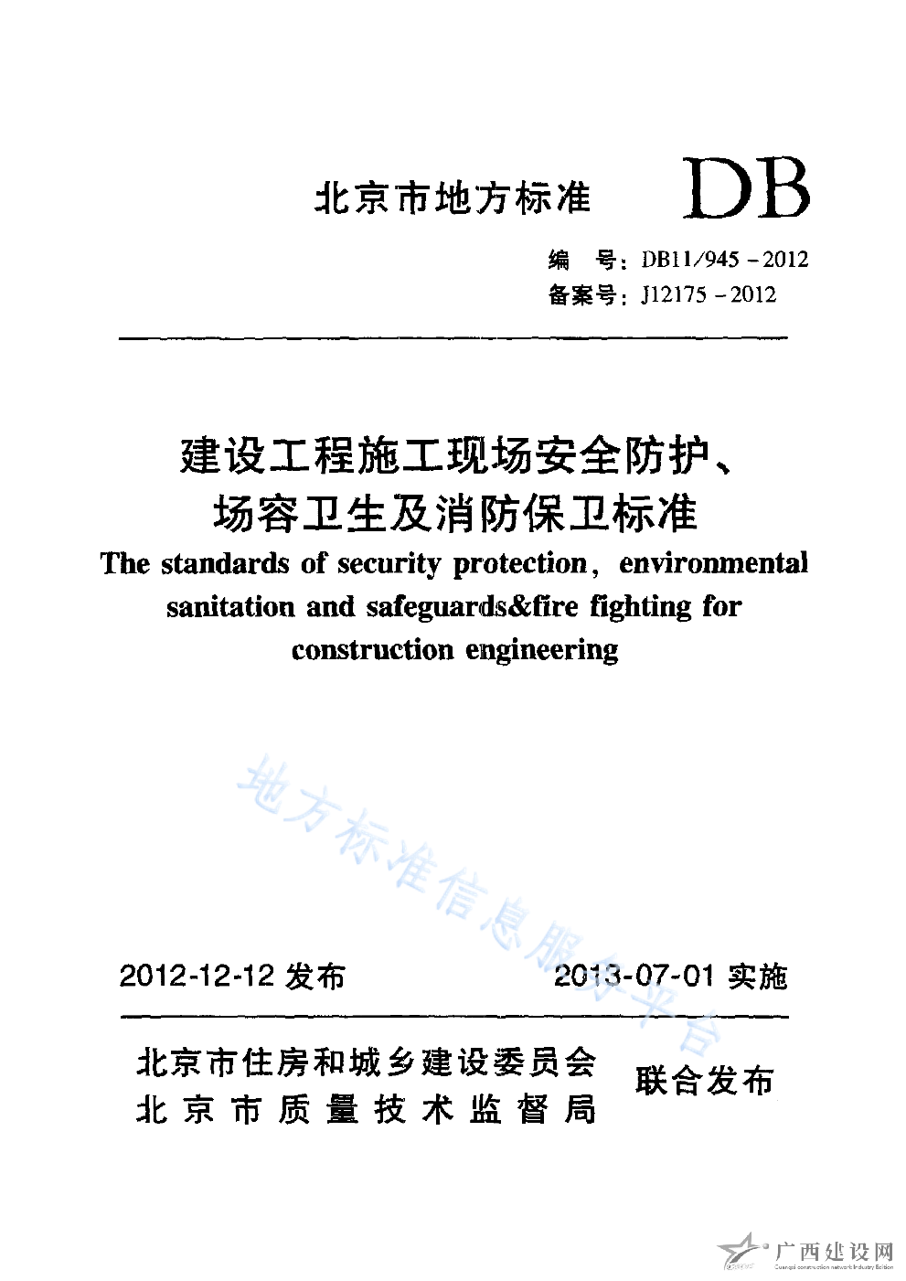 DB11 T_1132-2014建設工程施工現場生活區設置和管理規范