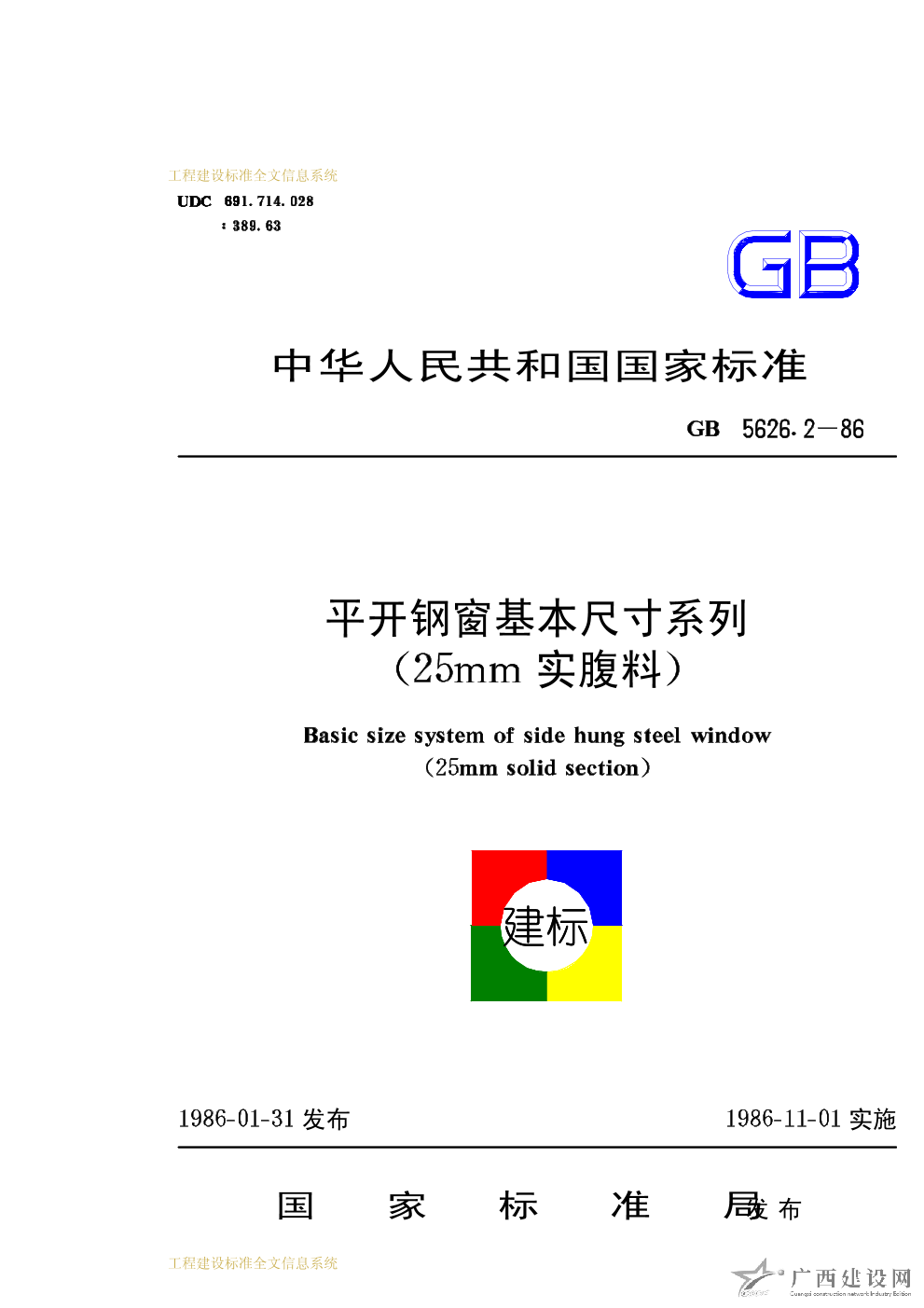平開鋼窗基本尺寸系列(25mm實(shí)腹料) GB5626.2-86