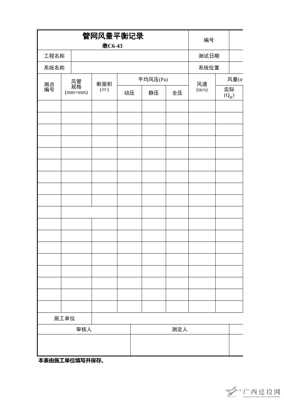 各房間室內(nèi)風(fēng)量溫度測量記錄